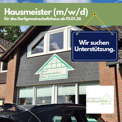 Zum 01. Januar 2026 🗓 suchen wir eine/n neue/n Hausmeister/in (m/w/d) 🛠 für unser Dorfgemeinschaftshaus 🏠 auf ehrenamtlicher Basis und Aufwandsentschädigung: